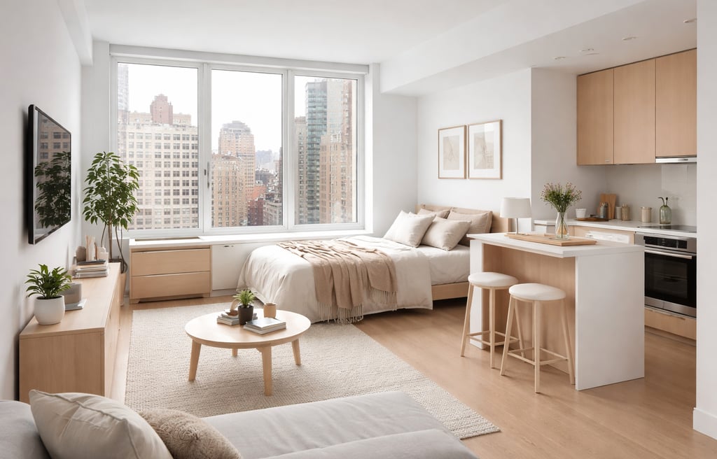 Here’s exactly how Charlotte transformed her NYC studio into a calm, functional, and cozy small apartment.
