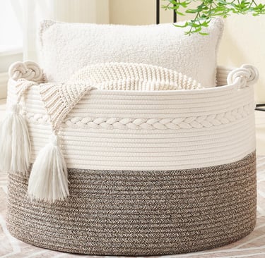 They hold throw blankets, books, and everyday essentials — while adding texture and warmth.