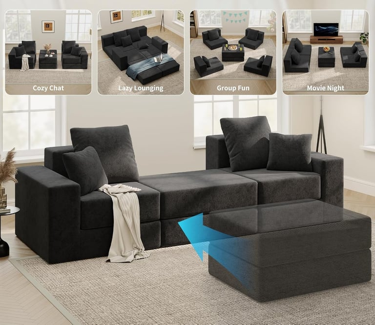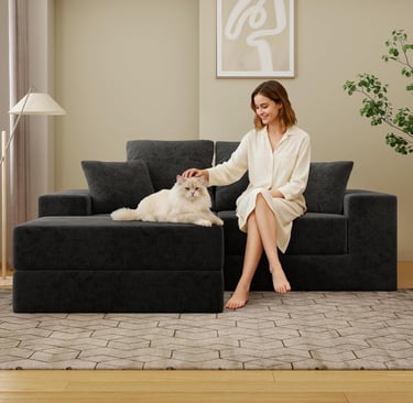 The Cloud Modular Sectional Sofa is a smart space-saving solution, featuring a customizable modular design with a reversible chaise to fit any layout.