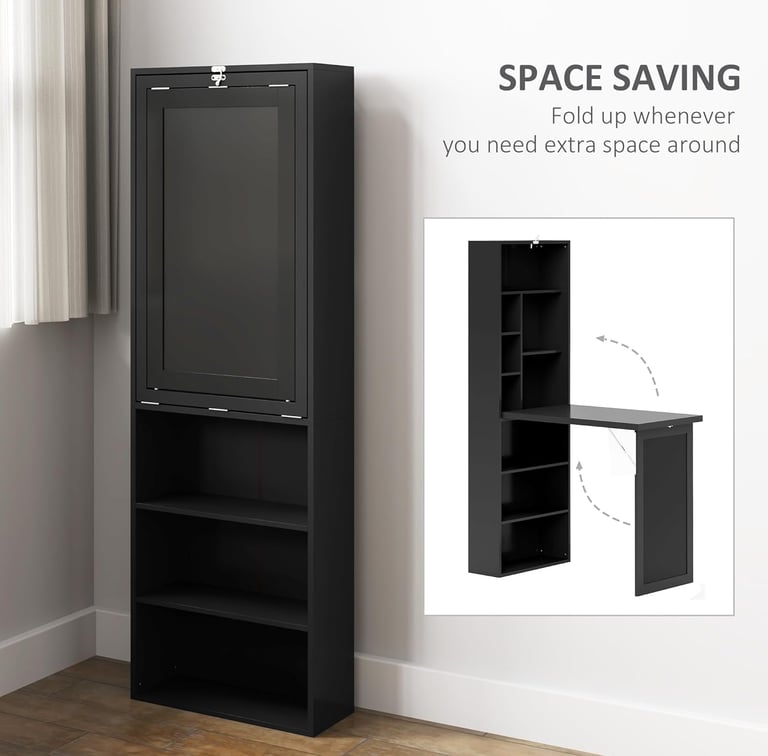 The first thing Charlotte realized was that traditional furniture doesn’t work in a small apartment layout. She replaced a bulky desk with a wall-mounted drop-leaf table like the Haotian Wall-Mounted Drop-Leaf Table.