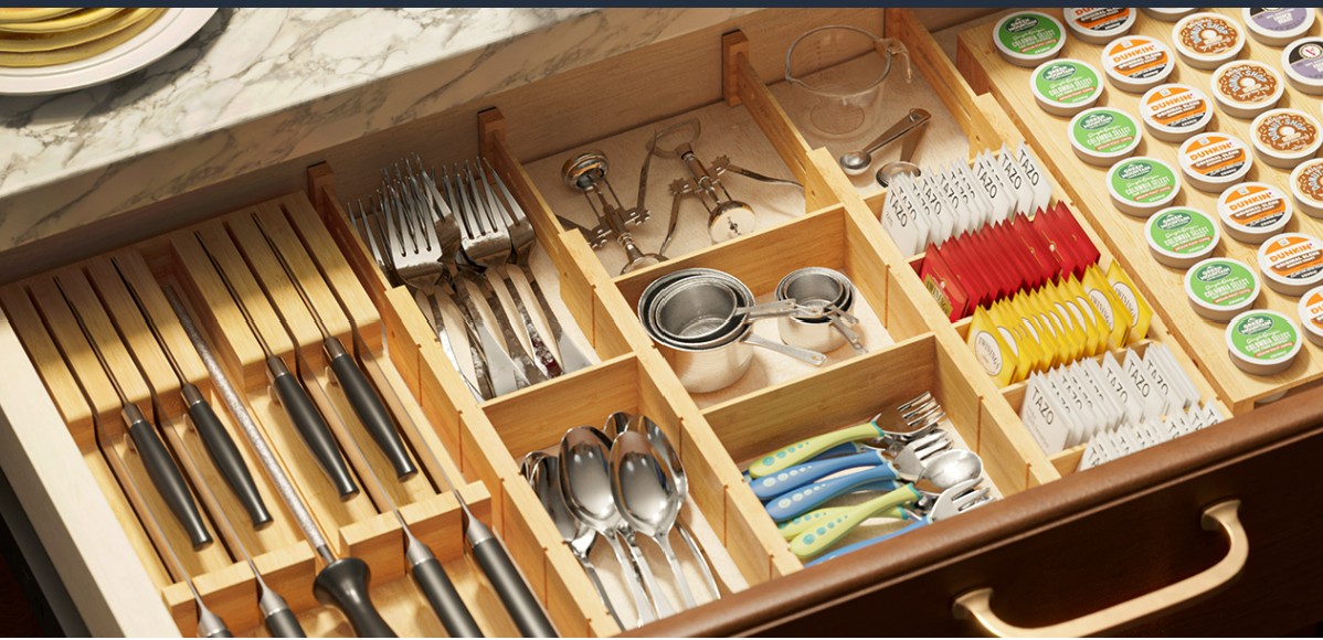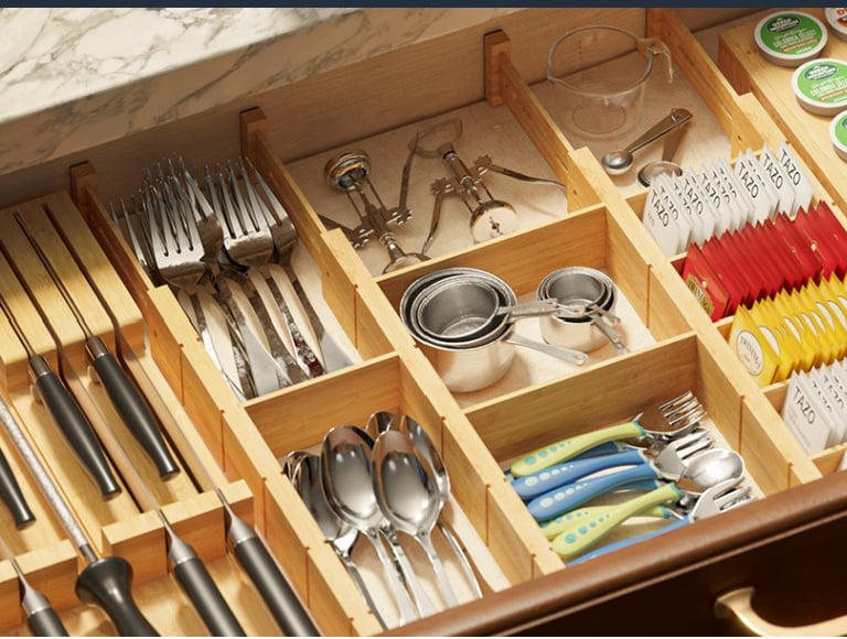 In small kitchens, clutter builds up fast. That’s why using adjustable drawer organizers can completely change how your space feels. Instead of digging through utensils, everything has its place and stays visible.