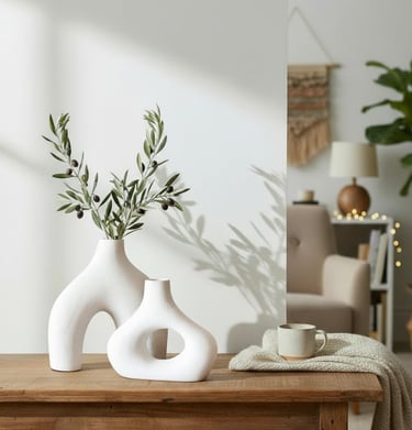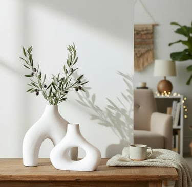 Calm and stylish spaces with floating shelves, minimalist lamps, and fresh scents.